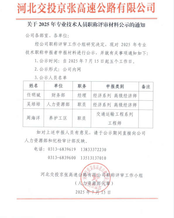 關(guān)于2025年專(zhuān)業(yè)技術(shù)人員職稱(chēng)評審材料公示的通知