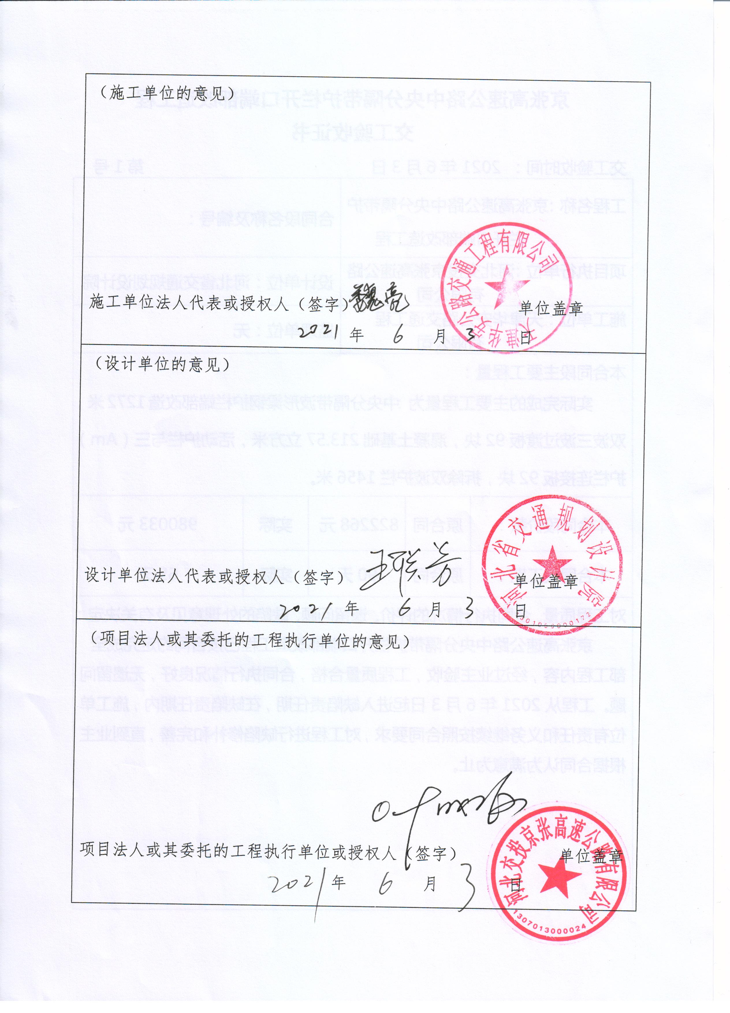 京張高速公路中央分隔帶護欄開(kāi)口端部改造工程交工驗收證書(shū)